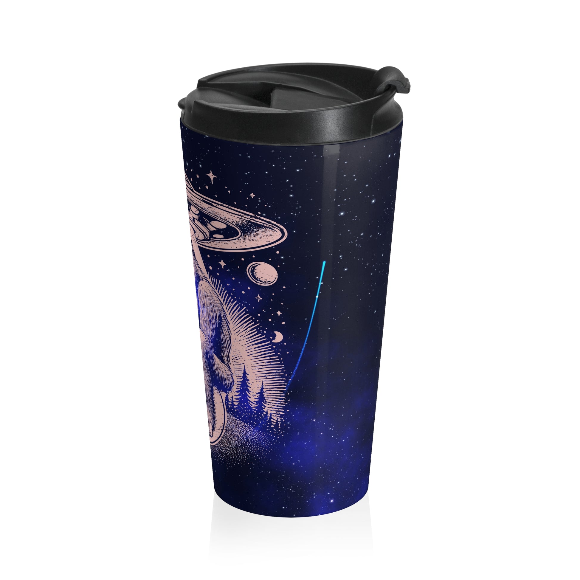 alien and bigfoot mug, UFO travel mug, 15oz stainless steel tumbler, cryptid coffee cup, extraterrestrial design, galaxy mug, sci-fi drinkware, funny UFO gift, paranormal themed mug