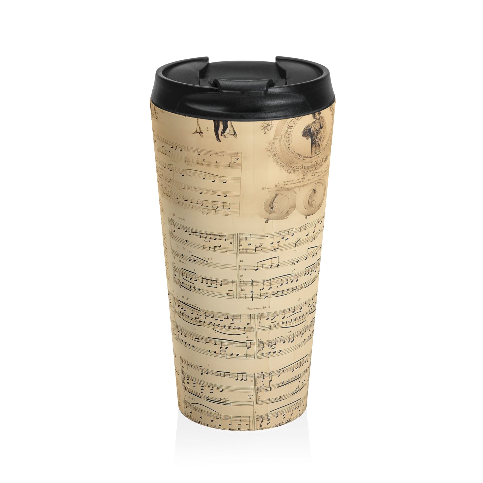 antique music travel mug, classical sheet music tumbler, vintage score drinkware, musician coffee mug, music teacher gift idea, retro music accessory, composer themed mug, vintage aesthetic drinkware 🎶✨