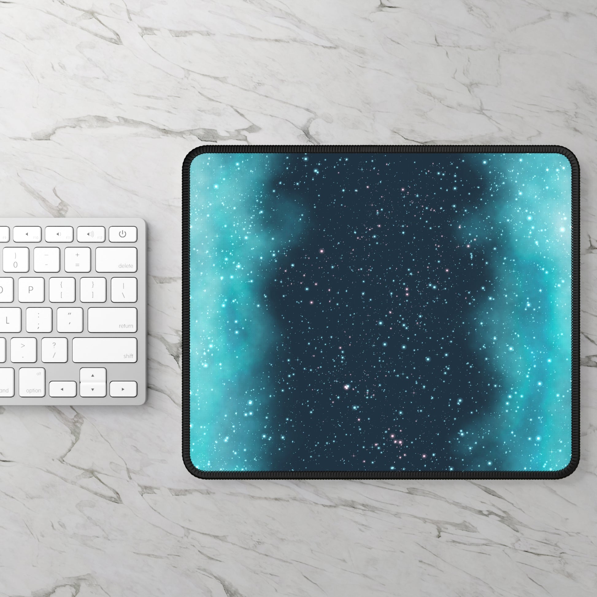 aqua galaxy mouse pad, starfield desk mat, nebula aesthetic mouse pad, space aesthetic desk, neoprene 9x7 mouse pad, cosmic desk accessories, galaxy gamer mouse pad, WackyGiftShop mouse pad