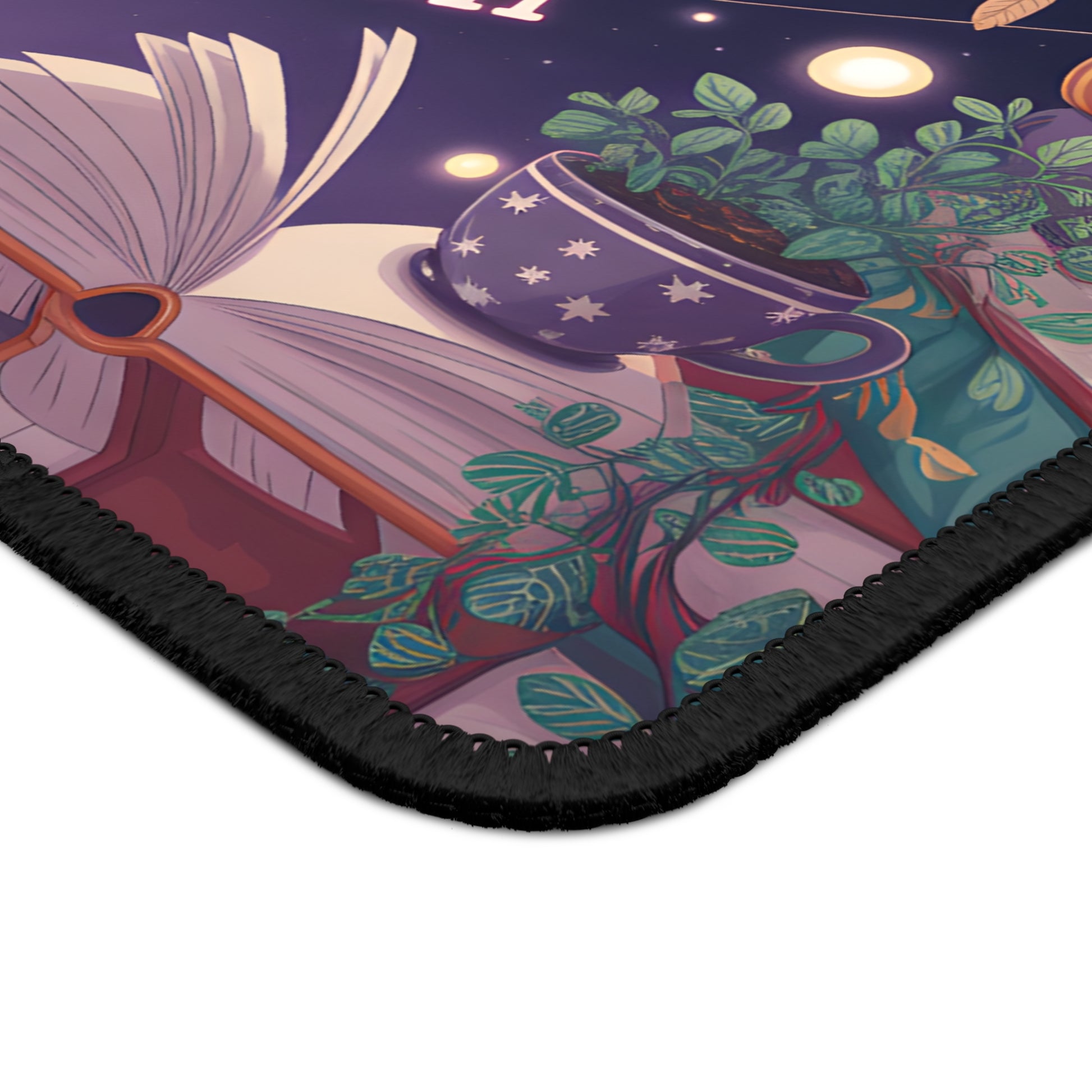 Turn your desk into a quiet little escape with this dreamy book-lover mouse pad. Surrounded by stacked novels, soft glowing lights, leafy plants, and open pages mid-story, this design captures the magic of reading where imagination never sleeps. With the gentle reminder that “books are dreaming with your eyes open,” this piece brings warmth, calm, and creativity to any workspace.