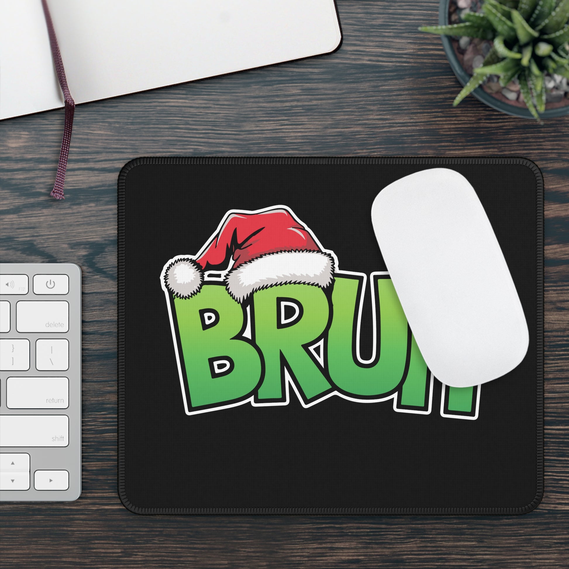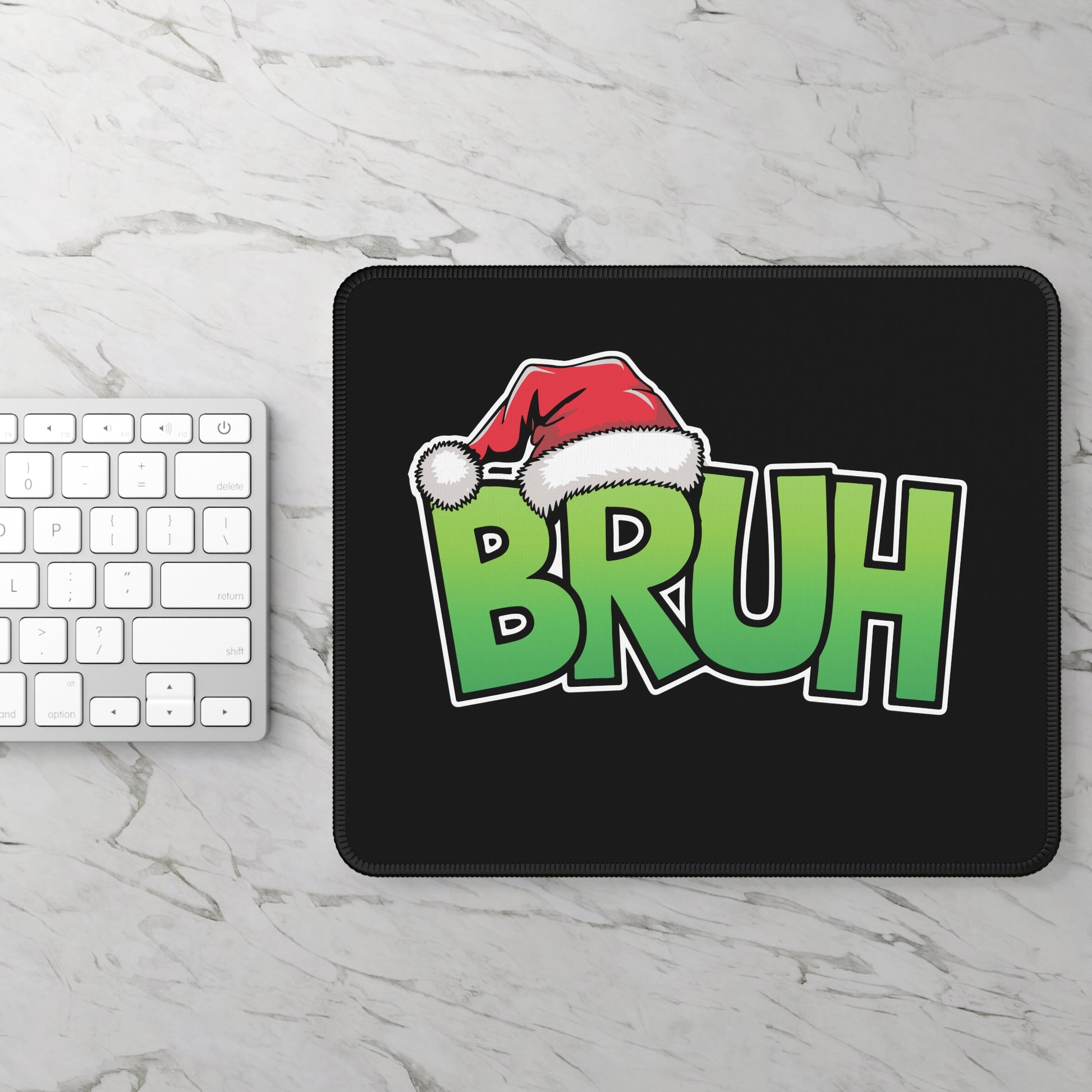 Some days do not need an explanation — they just need a bruh. This bold Gaming and Work Mouse Pad features chunky green lettering topped with a Santa hat on a sleek black background, delivering peak holiday sarcasm with zero effort. Whether it’s work emails, game losses, or seasonal chaos, this design says everything you are thinking without saying another word.