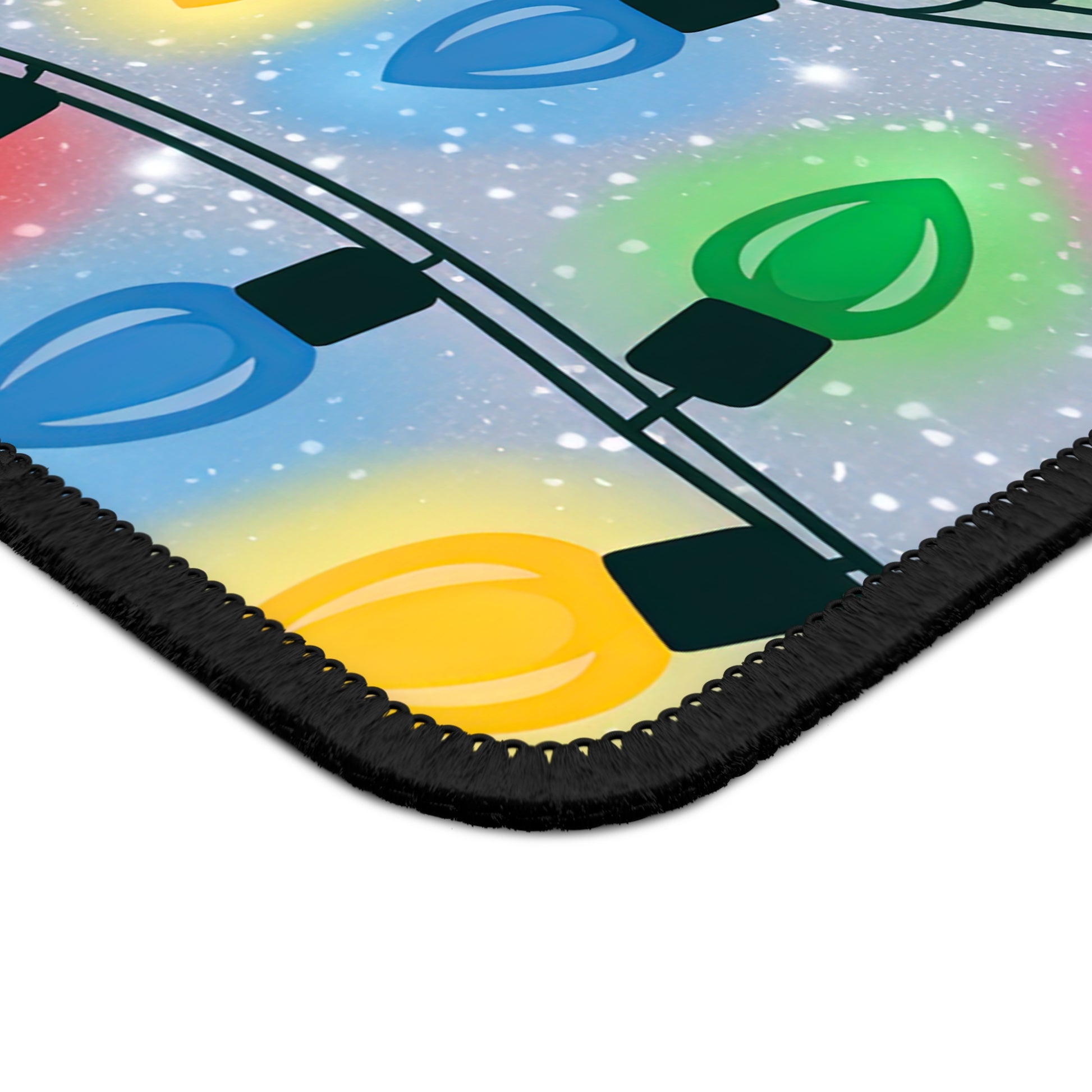Get your desk into the holiday spirit with this bright and cheerful Gaming and Work Mouse Pad! Featuring classic multicolor Christmas string lights glowing against a snowy background, this design brings instant festive warmth and cozy holiday vibes to any workspace. Perfect for spreading seasonal cheer while you game, work, or scroll your way through the holidays.