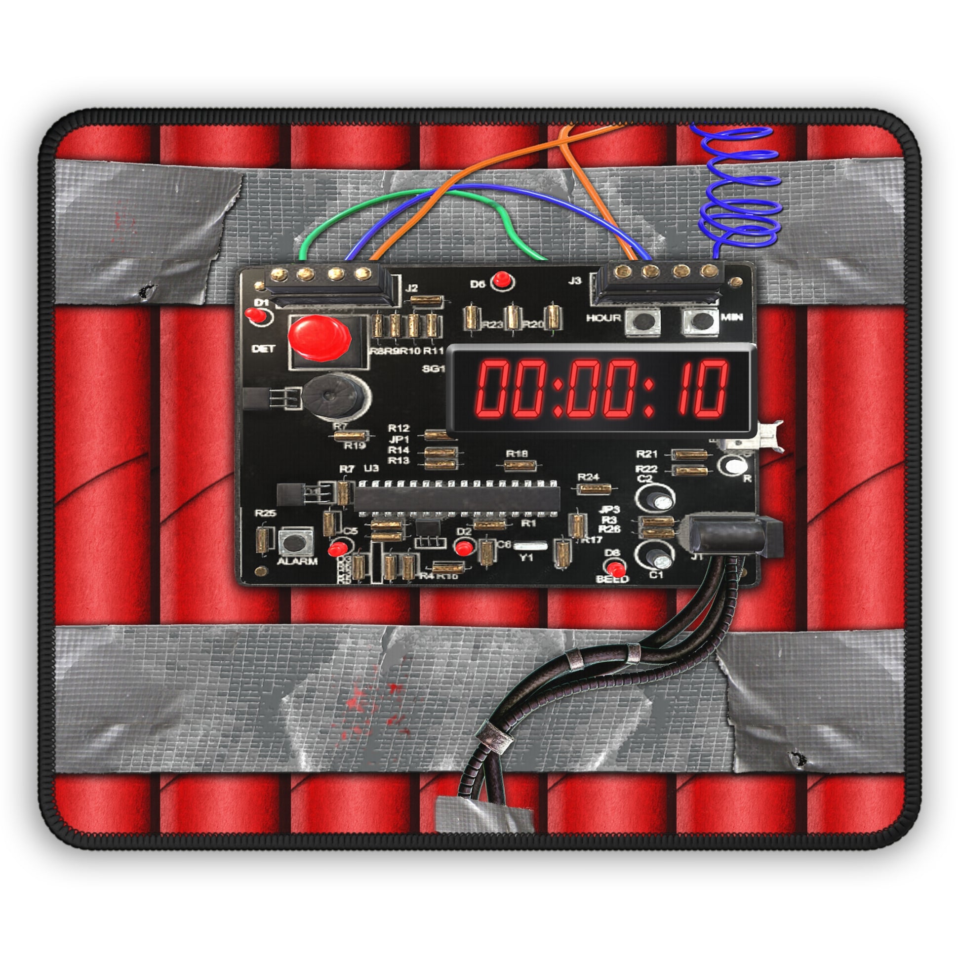 Tick. Tock. Deadline energy activated. This Gaming and Work Mouse Pad features a bold, high-contrast countdown timer circuit mounted over dramatic red sticks and rugged duct-tape textures. It looks like a split-second-before-impact moment frozen in time — equal parts tech, tension, and dark humor.