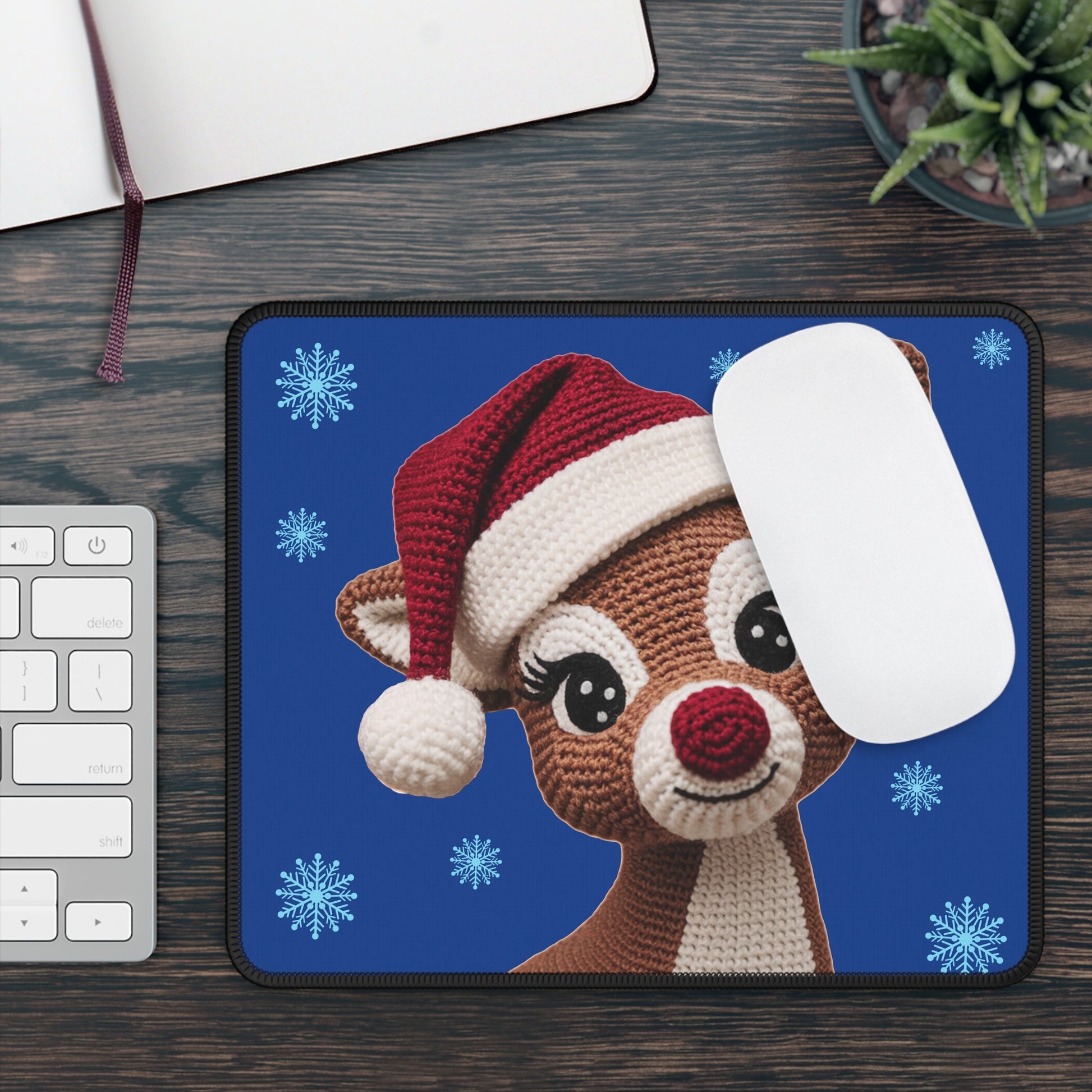 christmas reindeer mouse pad, crochet reindeer design, cute holiday desk mat, festive gaming pad, santa hat mouse pad, christmas gift idea, winter office decor, holiday gamer accessory, 9x7 neoprene mouse pad, WackyGiftShop mouse pad ๐๐ฆ