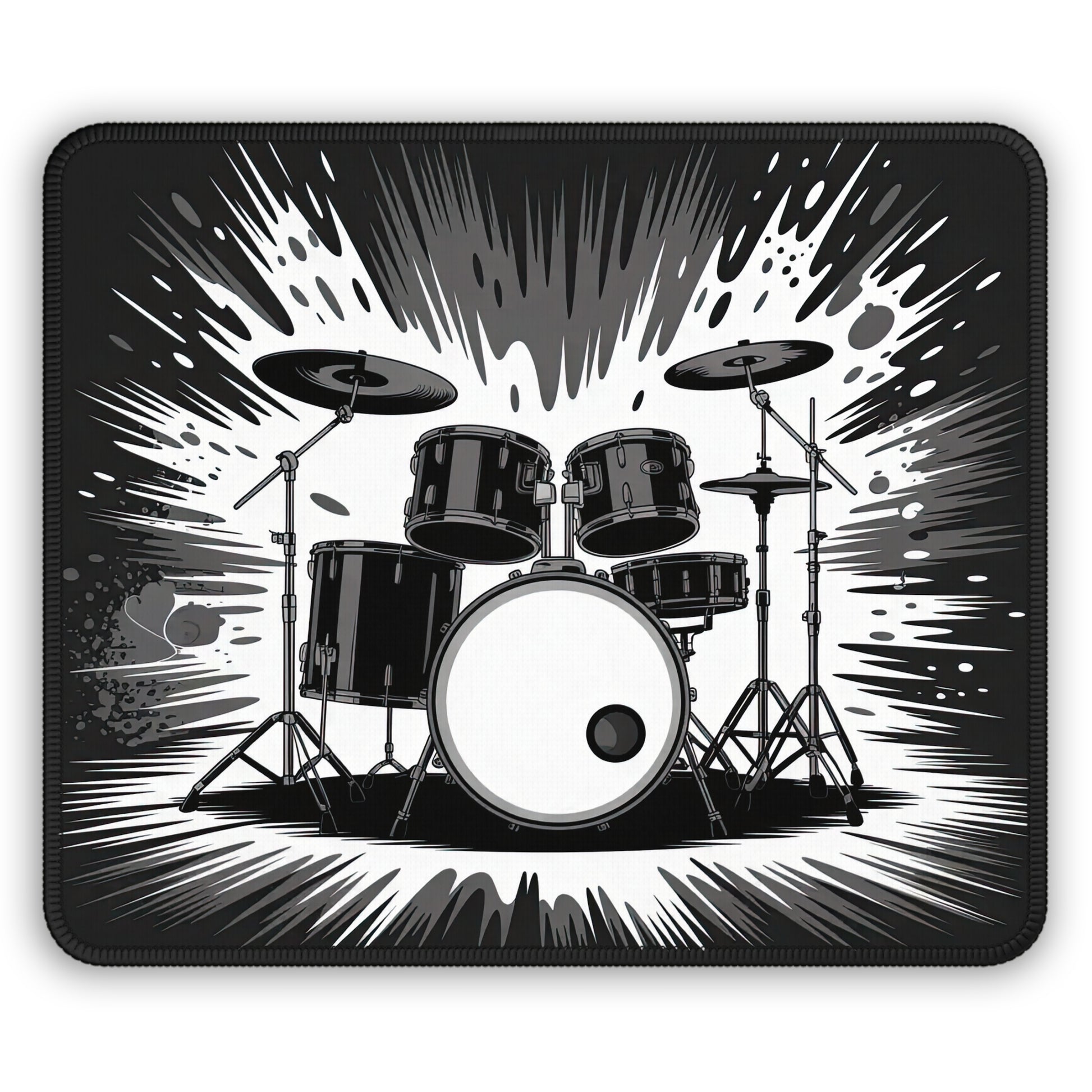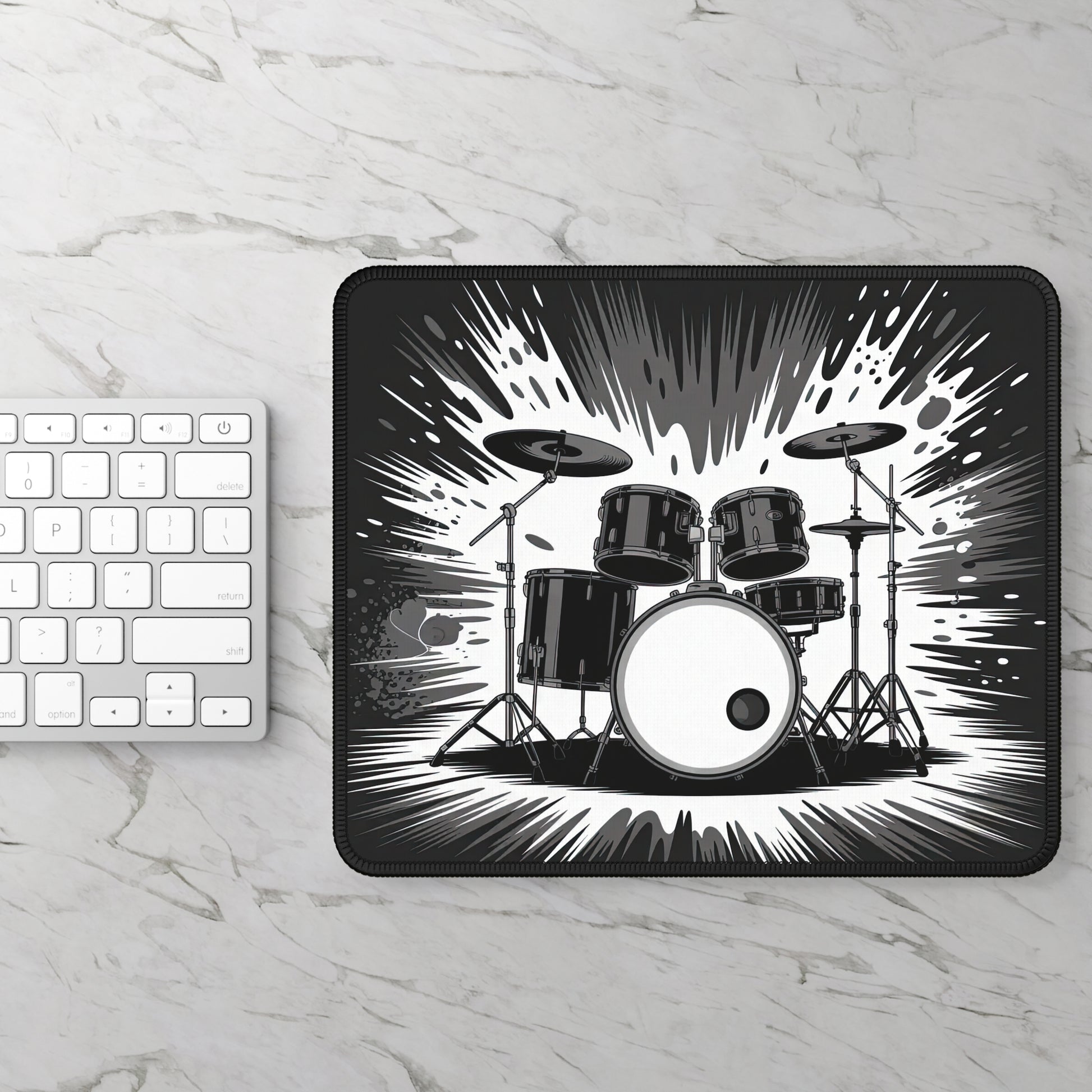 Turn up the volume on your workspace with this powerful drum kit mouse pad. Featuring a striking black-and-white drum set bursting through an explosive splash design, this piece captures the raw energy, rhythm, and intensity of live music. Clean, graphic, and unapologetically bold, it is perfect for musicians, drummers, and anyone who lives life to a beat.