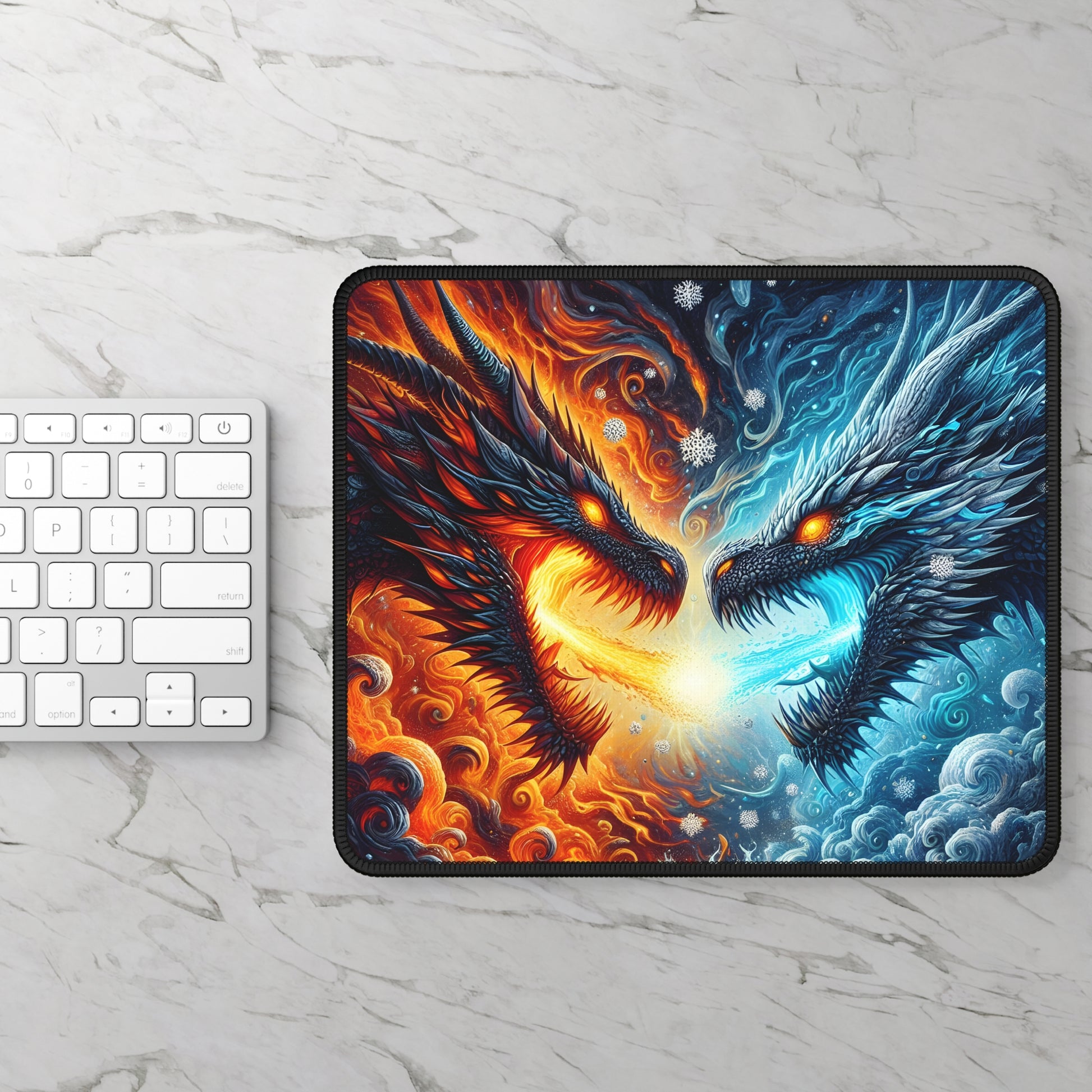 dragon mouse pad, fire and ice mouse pad, fantasy desk mat, elemental dragon art, neoprene gaming mouse pad, dragon gift, fantasy gamer desk, WackyGiftShop mouse pad