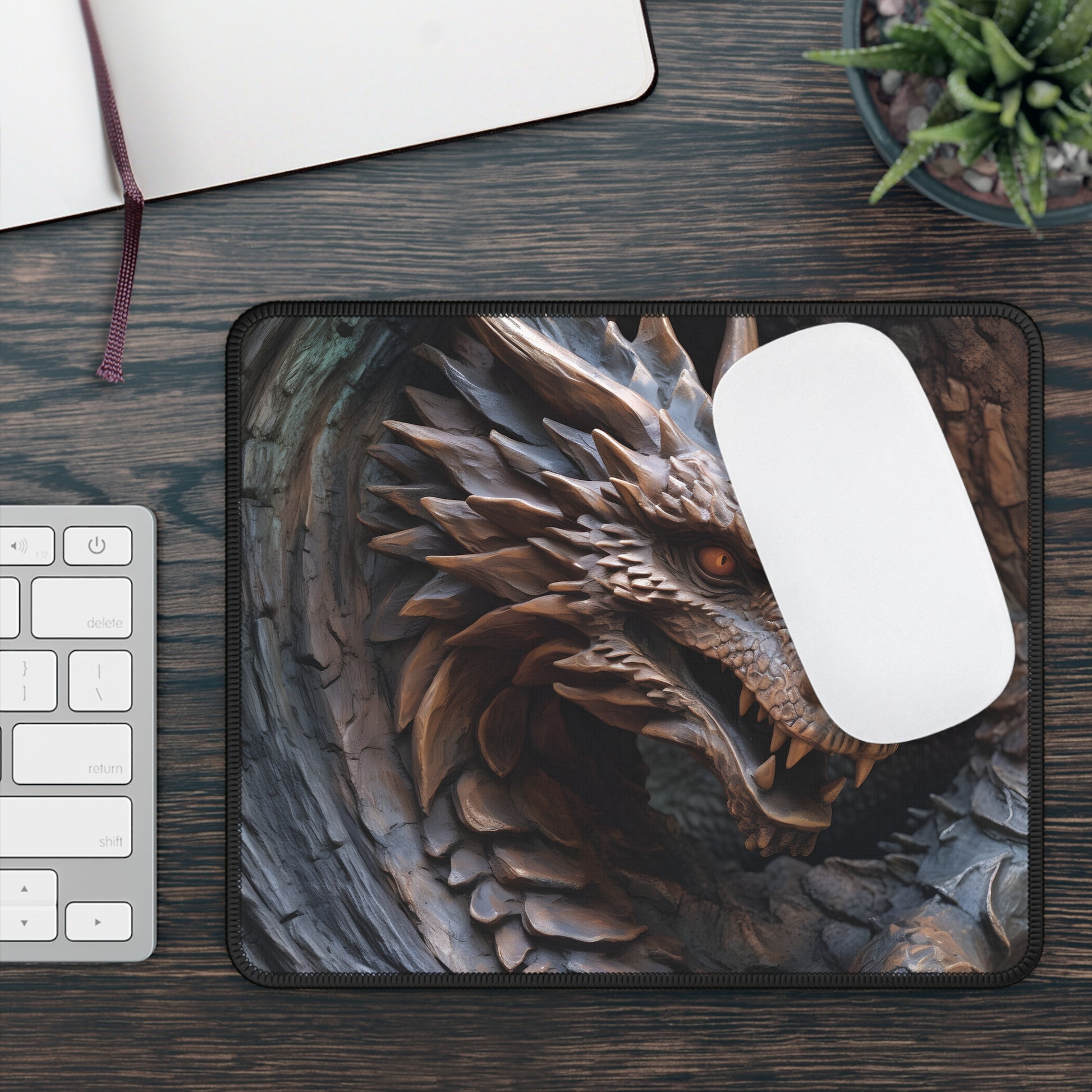 dragon mouse pad, fantasy desk mat, medieval creature design, RPG gamer accessory, fierce dragon art, mythical beast decor, WackyGiftShop fantasy collection