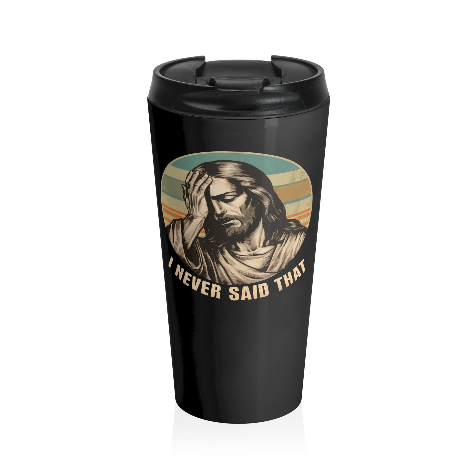 Bring humor and a little divine side-eye to your morning routine with the Facepalm Savior Travel Mug — featuring a vintage-style illustration of Jesus doing a full-on facepalm with the caption “I NEVER SAID THAT.” Perfect for anyone who loves funny, irreverent, or thought-provoking designs, this mug delivers both laughs and caffeine at the same time.
