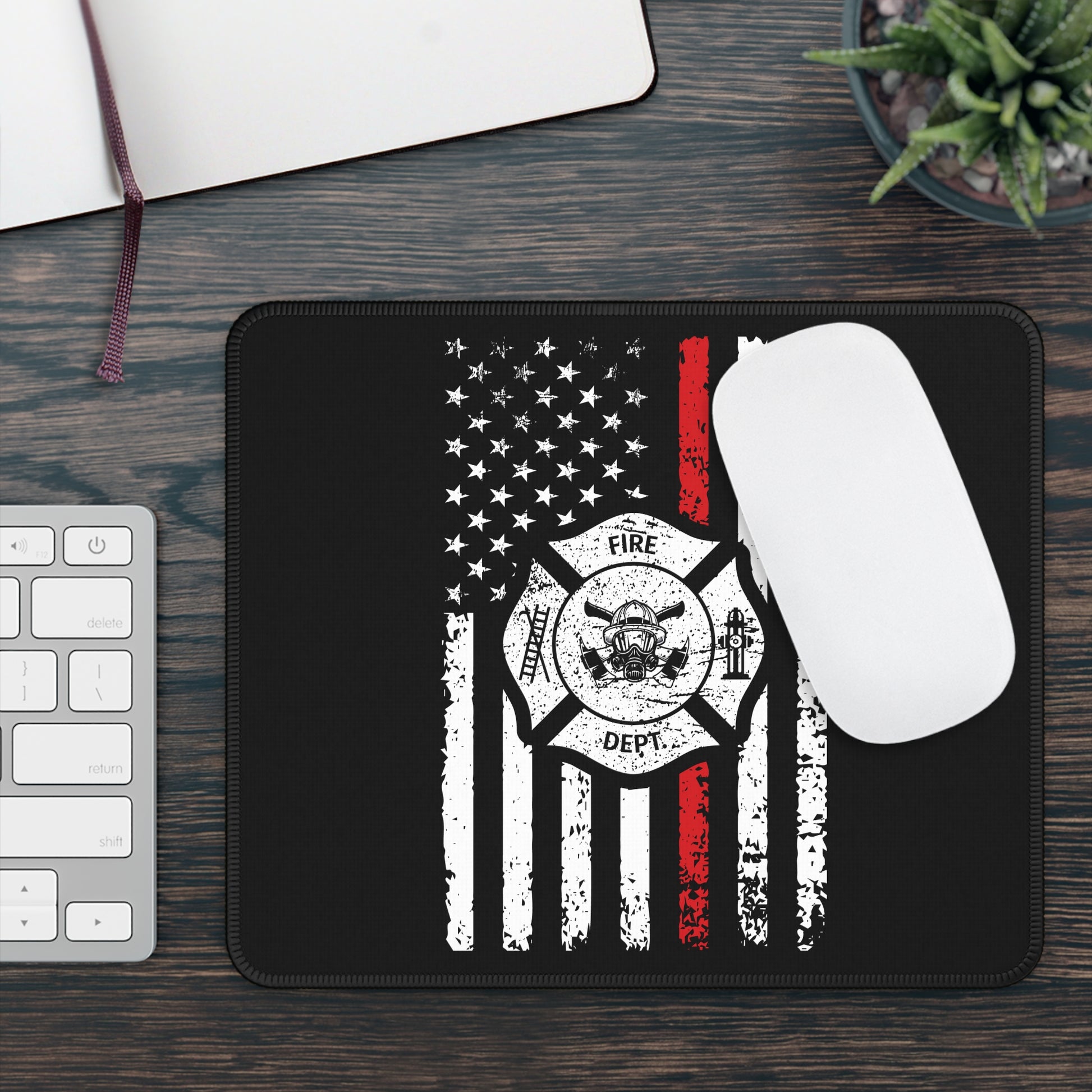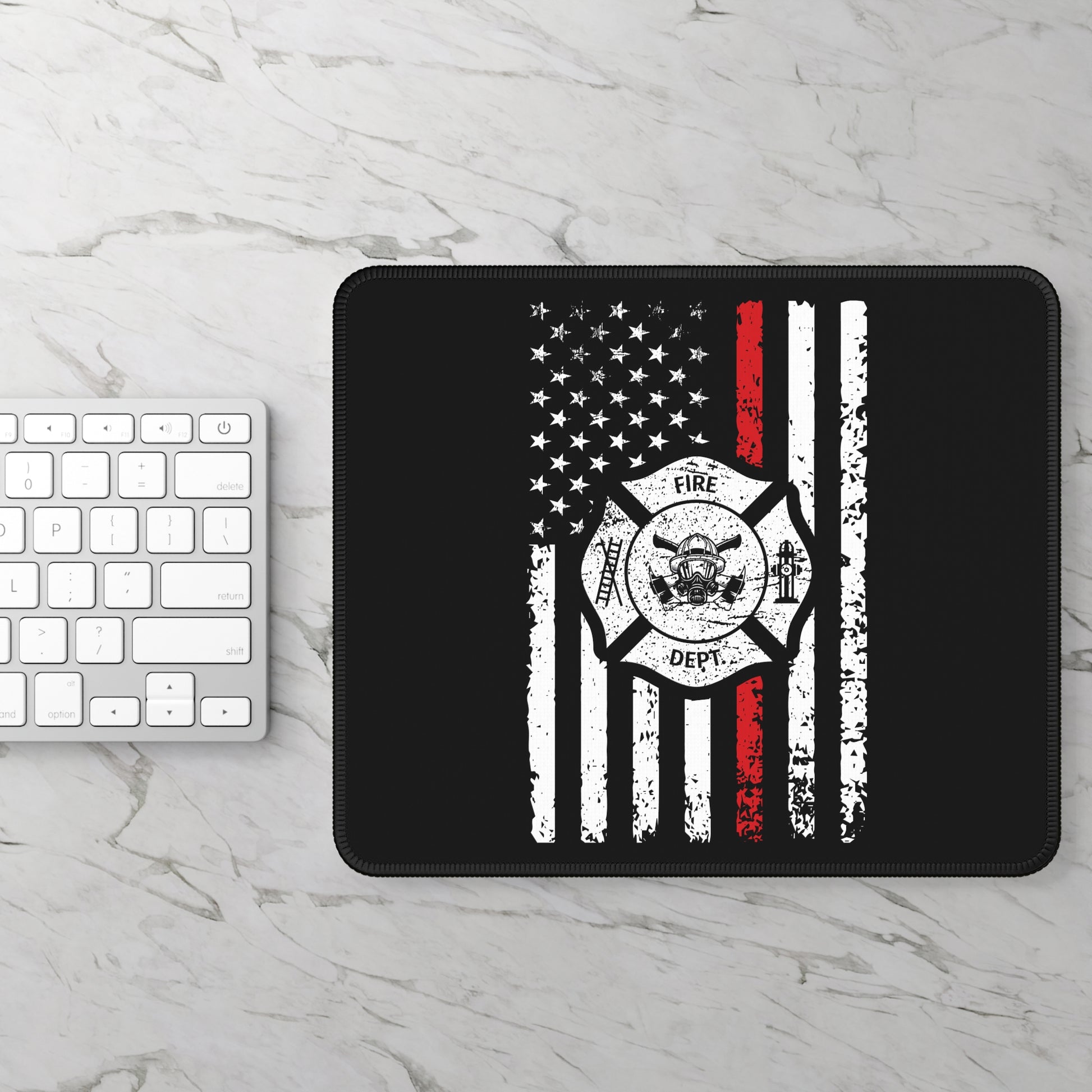 Bring pride, purpose, and bold first-responder energy to your desk with this striking Fire Dept Patriot Mouse Pad. Featuring a distressed American flag design with a red line tribute and classic fire service emblem, this mouse pad delivers a powerful look that honors firefighters while leveling up your gaming or work setup. Rugged, patriotic, and made to perform—this one means business.