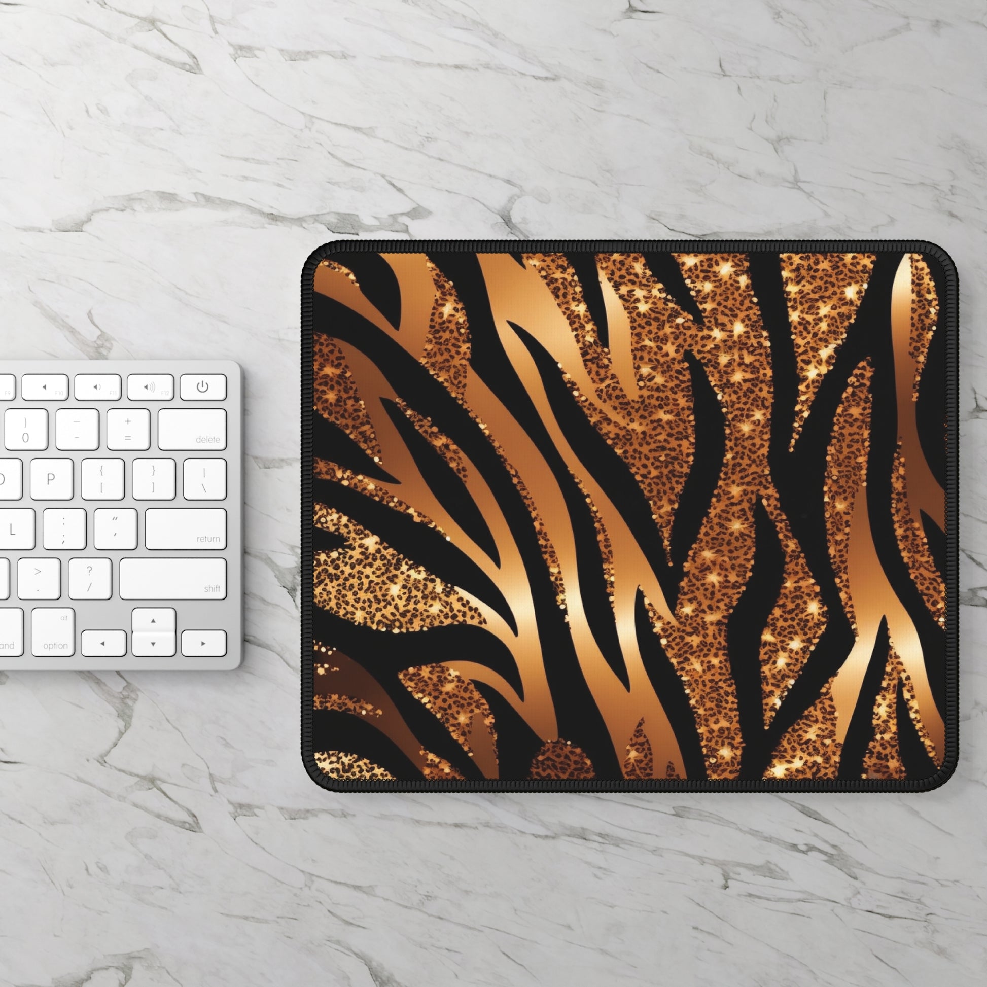 Golden Safari Mouse Pad – 9x7 Neoprene Desk Mat with Luxe Zebra and Leopard Print Design