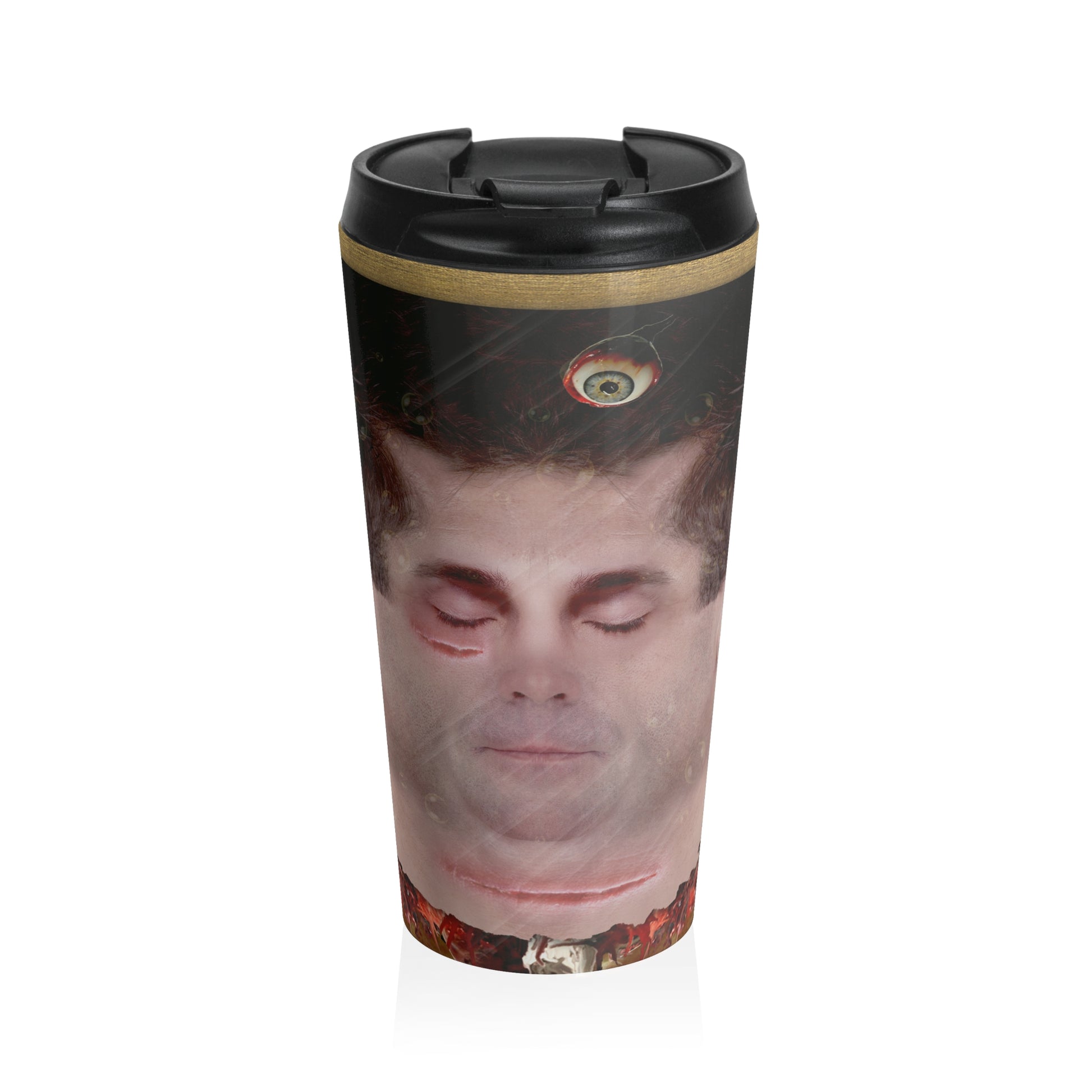 Elevate your daily routine with this eerie Stainless Steel Travel Mug featuring a chilling horror-style design that looks straight out of a supernatural nightmare. With a haunting floating head, stitched wounds, and surreal details like a disembodied eye, this mug is perfect for fans of dark art, spooky aesthetics, and all things creepy. Whether you're sipping coffee during a horror movie marathon or celebrating Halloween year-round, this mug keeps your drink hot or cold while sending shivers down your spine.