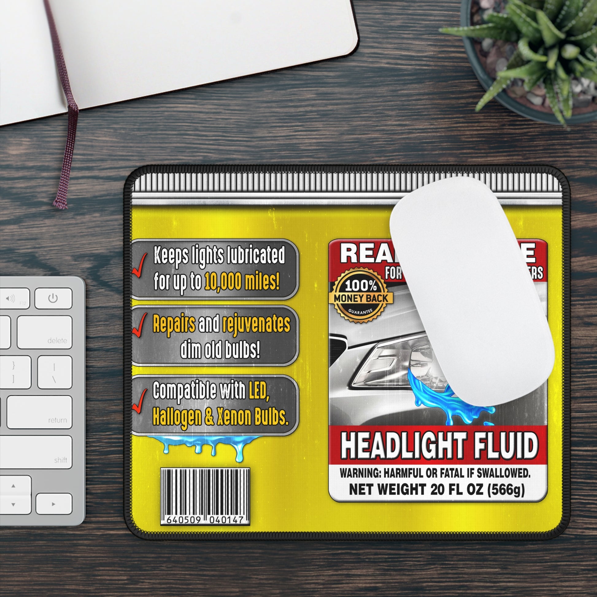 headlight fluid mouse pad, funny car mouse pad, mechanic desk mat, automotive humor mouse pad, novelty desk accessory, prank gift mouse pad, neoprene mouse pad 9x7