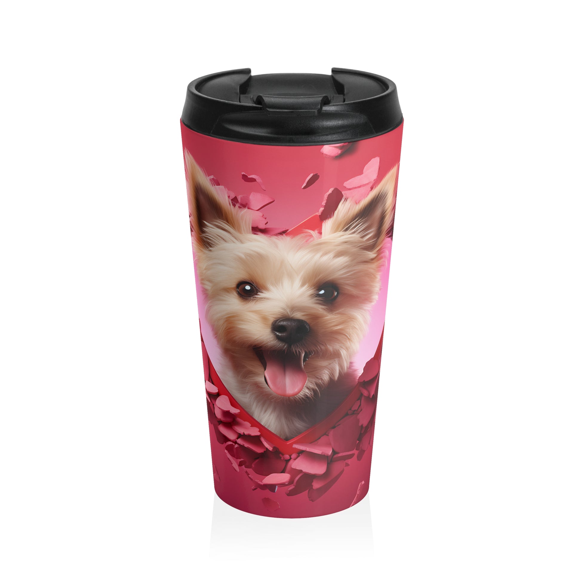 terrier travel mug, valentine dog mug, fluffy dog coffee cup, stainless steel dog mug, heart puppy tumbler, dog lover gift, cute terrier mug, animal drinkware, WackyGiftShop mug
