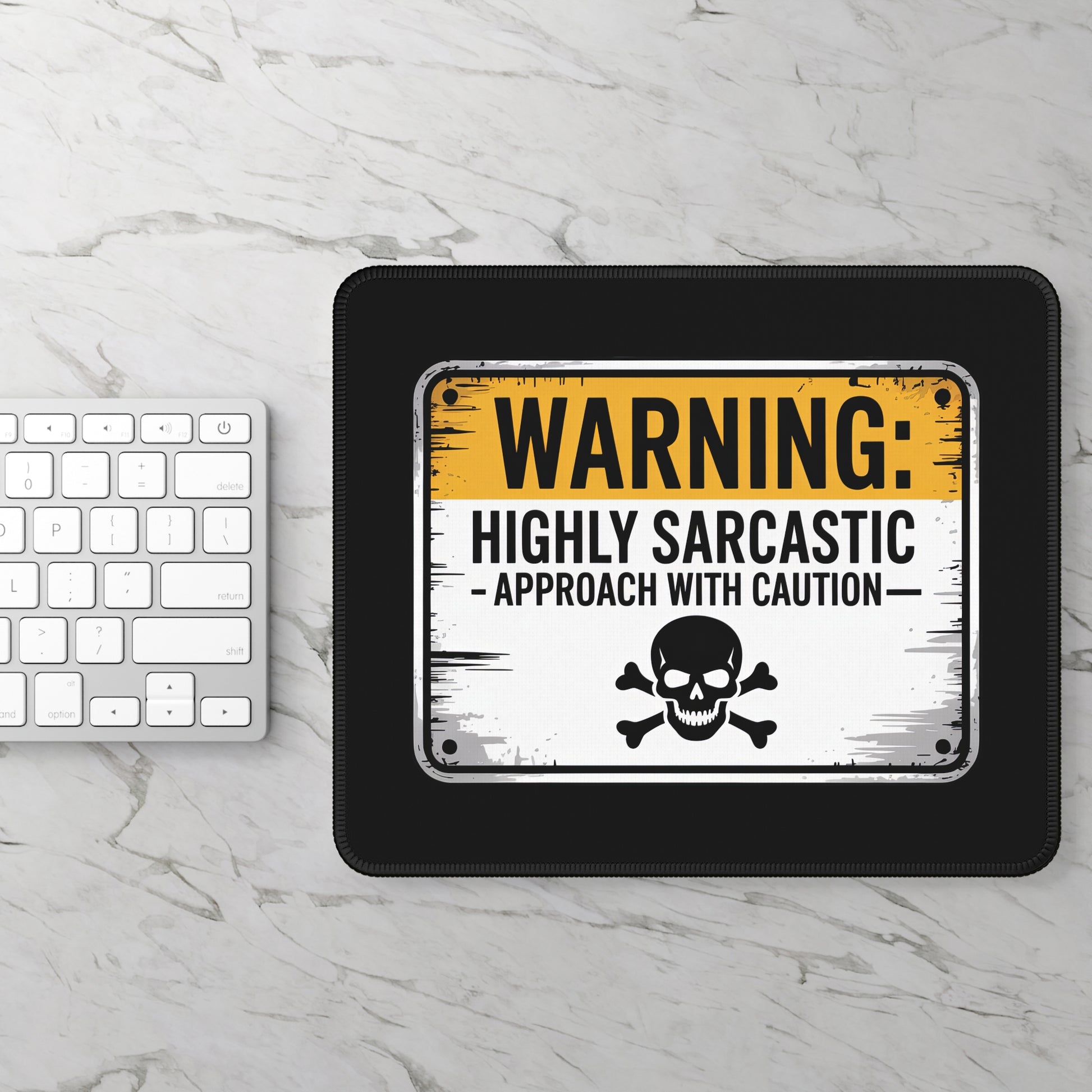 Set expectations instantly with this bold Gaming and Work Mouse Pad. Featuring a distressed industrial-style warning sign that reads “WARNING: Highly Sarcastic – Approach With Caution” with a skull-and-crossbones accent, this design brings sharp humor and unmistakable attitude to your desk. Perfect for gamers, office rebels, and anyone whose sarcasm deserves proper signage.