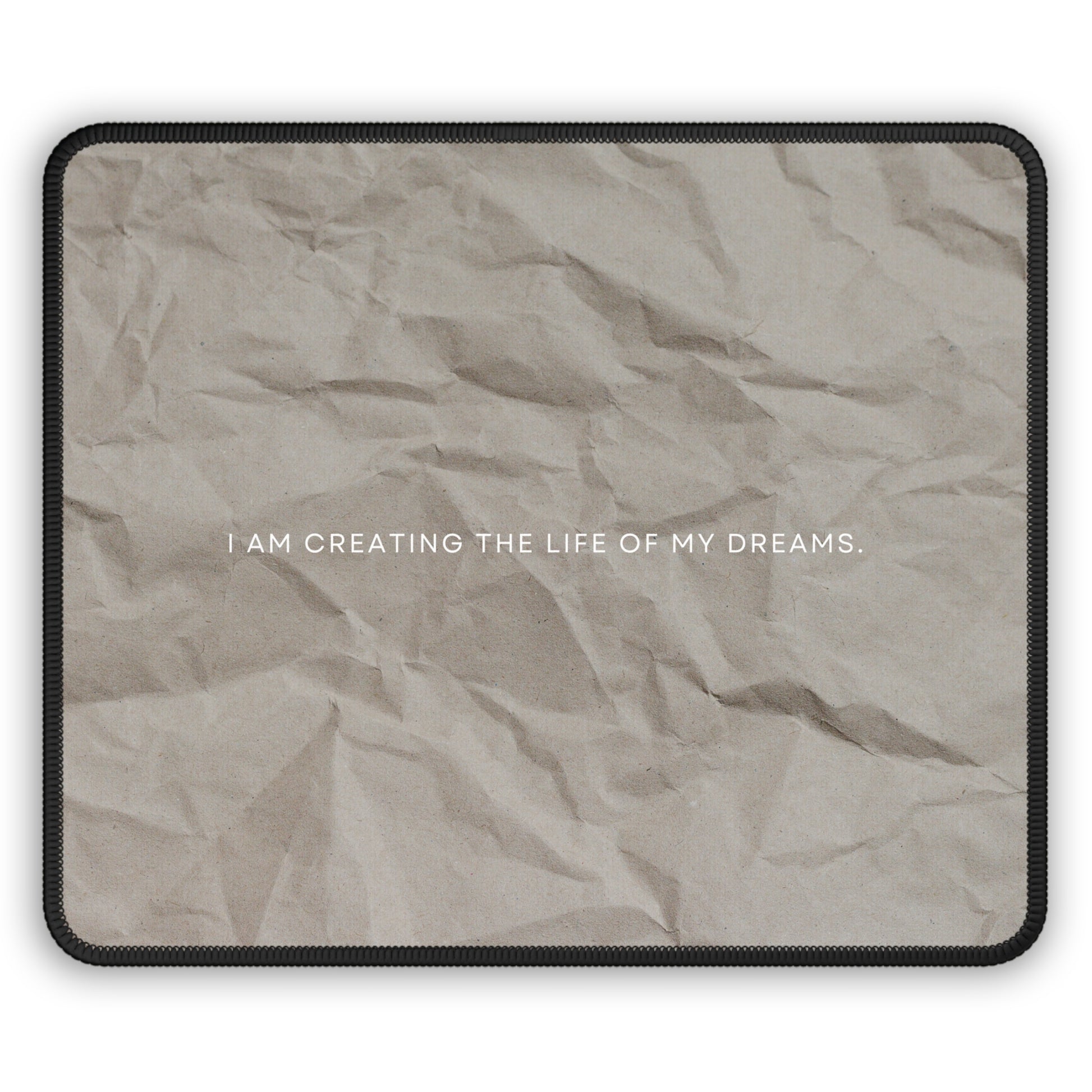 Keep your goals front and center with the Life of My Dreams Mouse Pad from WackyGiftShop.com ✨. Featuring a simple beige crumpled-paper texture and the empowering affirmation “I am creating the life of my dreams,” this design blends elegance with daily motivation — perfect for visionaries, dreamers, and go-getters.