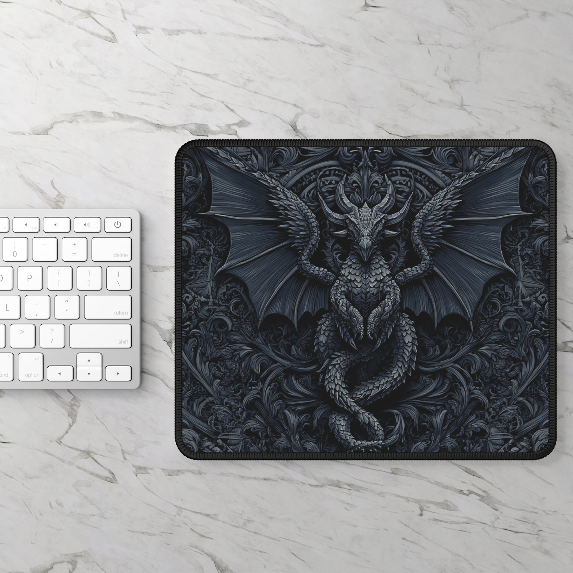black dragon mouse pad, gothic dragon desk mat, dark fantasy mouse pad, monochrome dragon gaming pad, neoprene desk mat, gothic gaming accessories, WackyGiftShop mouse pad