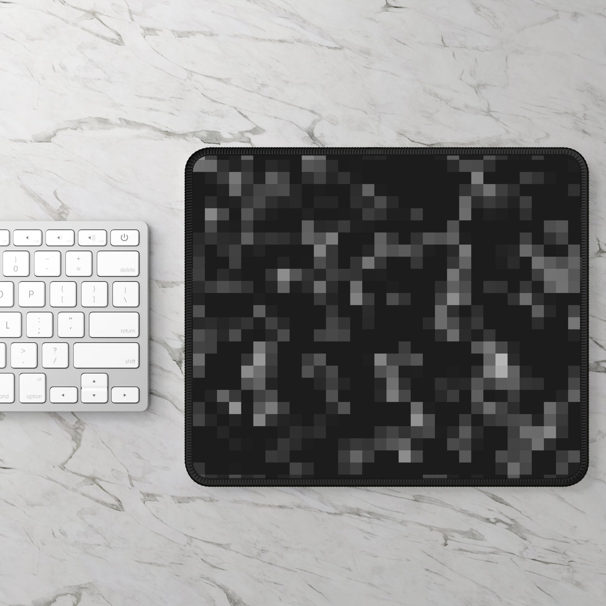 Abstract pixel-style pattern in layered shades of black and gray covering a rectangular mouse pad