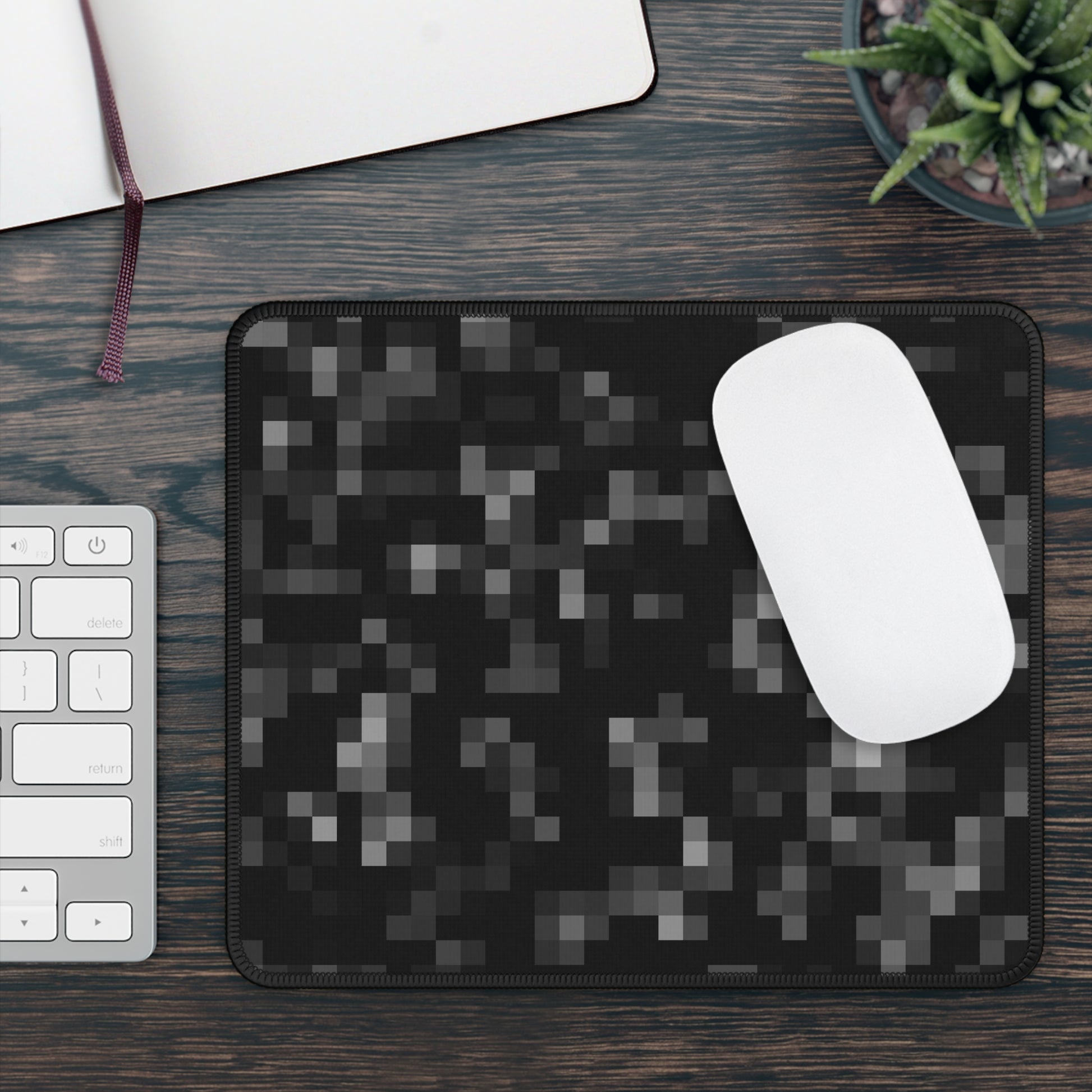 black pixel mouse pad, grayscale desk mat, dark abstract mouse pad, minimalist desk accessories, neoprene mouse pad, modern desk mat, WackyGiftShop mouse pad