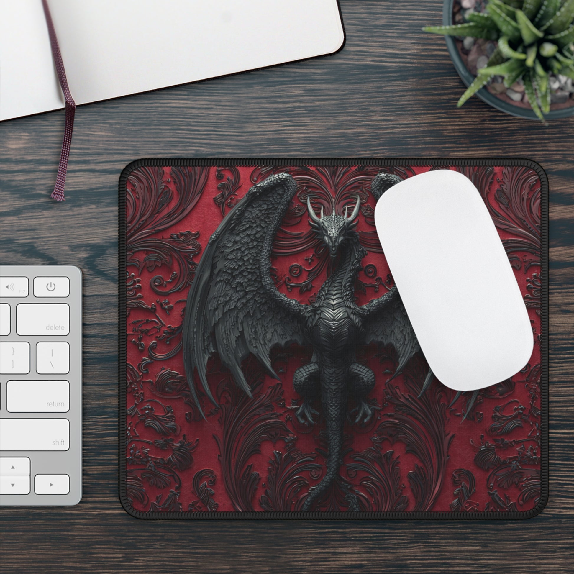 dragon mouse pad, gothic dragon desk mat, fantasy gaming mouse pad, dark fantasy mouse pad, neoprene gaming desk mat, medieval dragon decor, WackyGiftShop mouse pad
