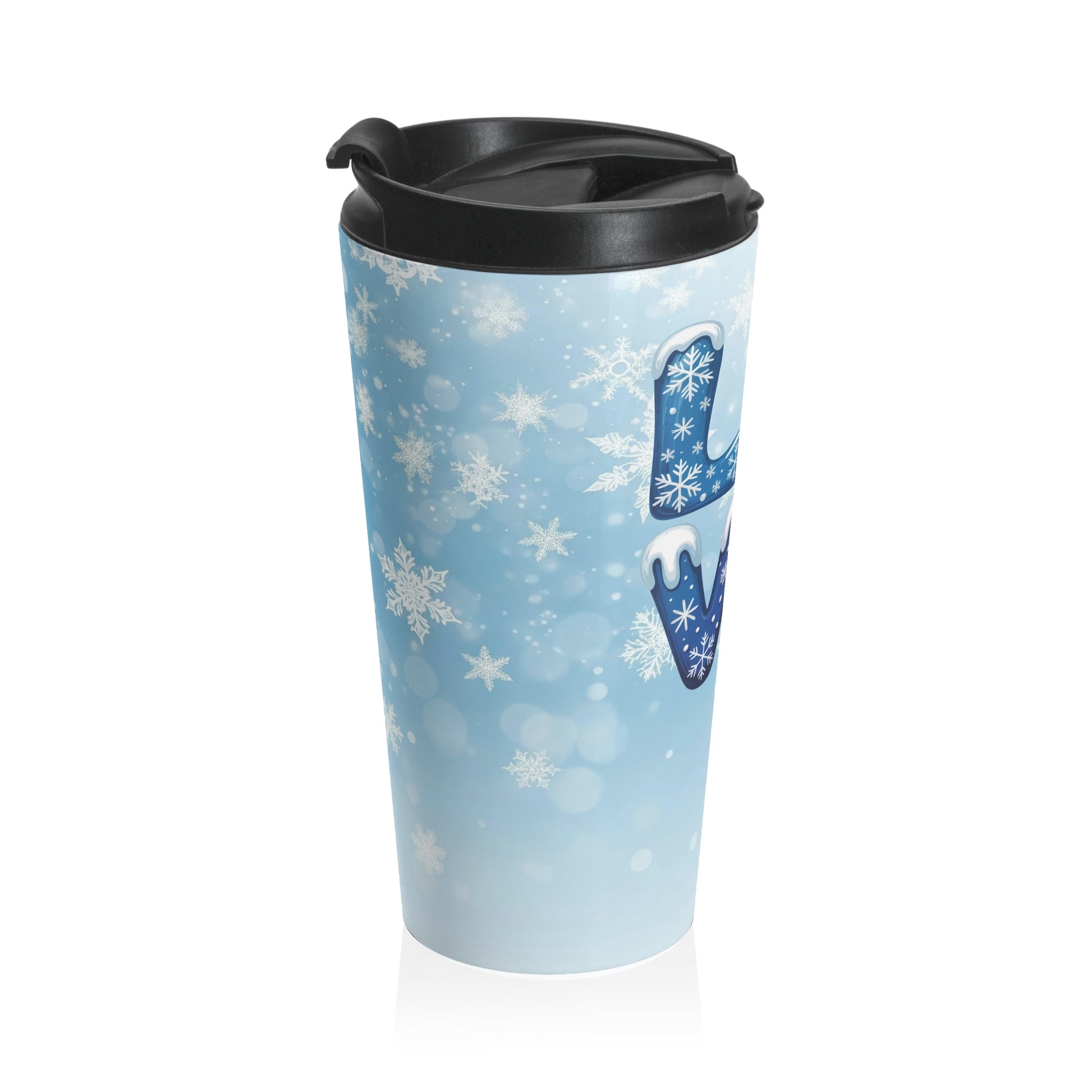 Bring a little warmth to winter with the Snowman Love Travel Mug — a cheerful design featuring the word “LOVE” shaped with frosty letters and a smiling snowman tucked inside. With its cozy beanie hat, snowflakes, and icy blue tones, this mug spreads pure seasonal joy with every sip. Perfect for snowy mornings, holiday outings, or curling up with a warm drink on a chilly night, this mug keeps your beverages just right while giving winter an extra dose of happiness.