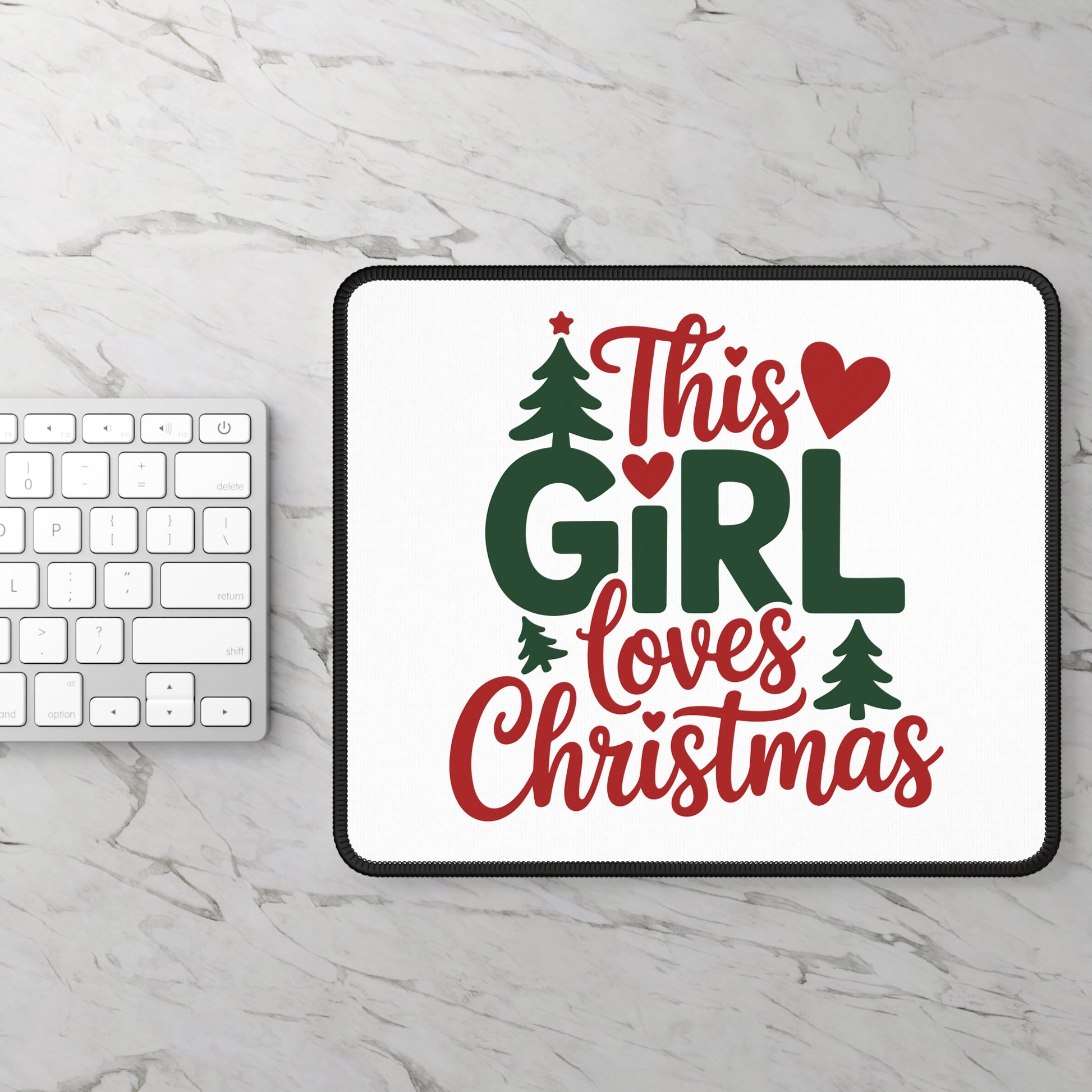 this girl loves christmas mouse pad, christmas desk mat, holiday gaming mouse pad, festive office decor, neoprene 9x7 mouse pad, christmas gift for her, holiday desk accessories, WackyGiftShop mouse pad
