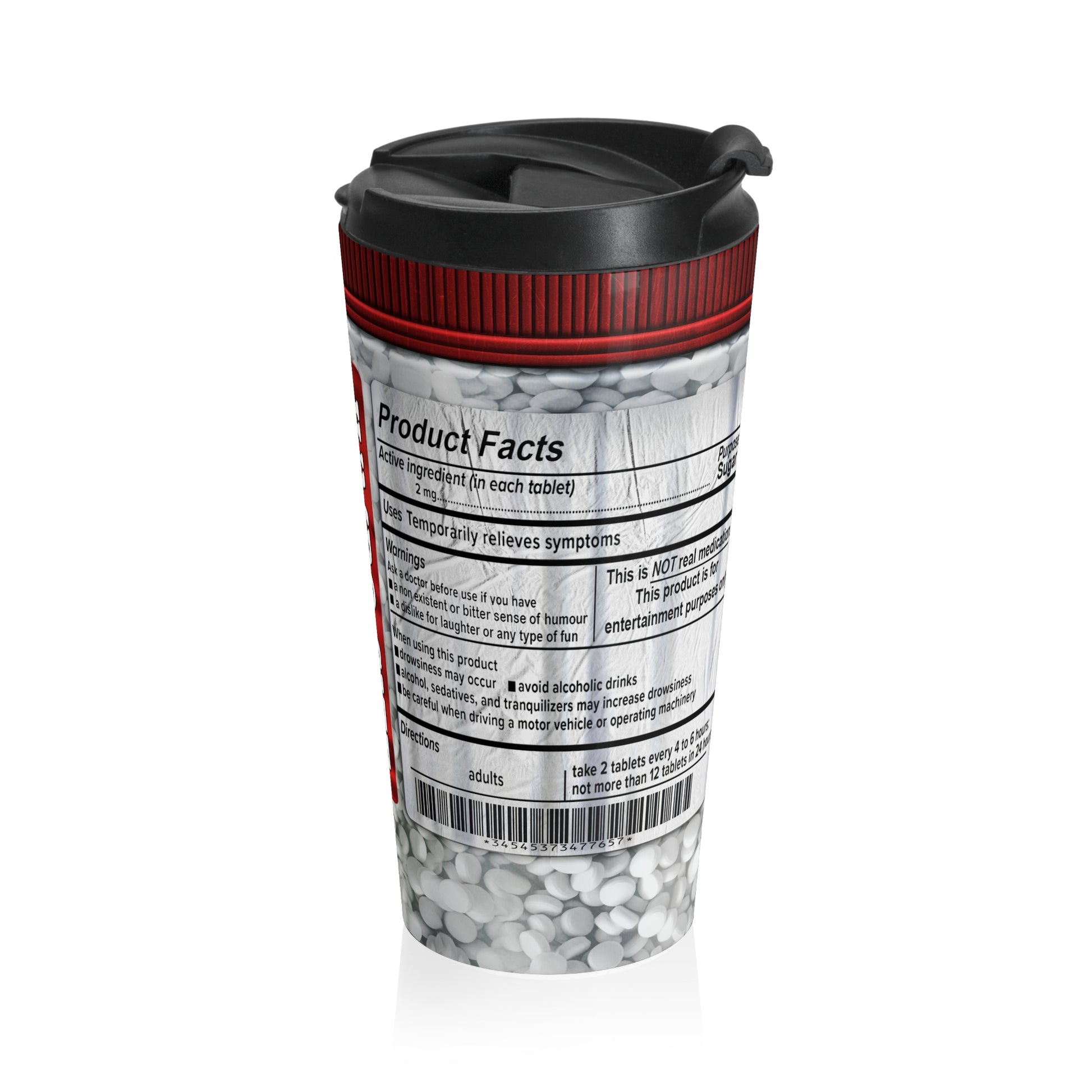 Elevate your daily routine with this brutally honest Stainless Steel Travel Mug, designed for anyone who has officially run out of patience. Styled like a fictional extra-strength medication bottle, “Tiredofitol” delivers comedic relief from everything and everyone’s nonsense. Whether you're grinding through work, dealing with chaos, or just need a laugh, this mug keeps your drink hot or cold while expressing exactly how you feel.