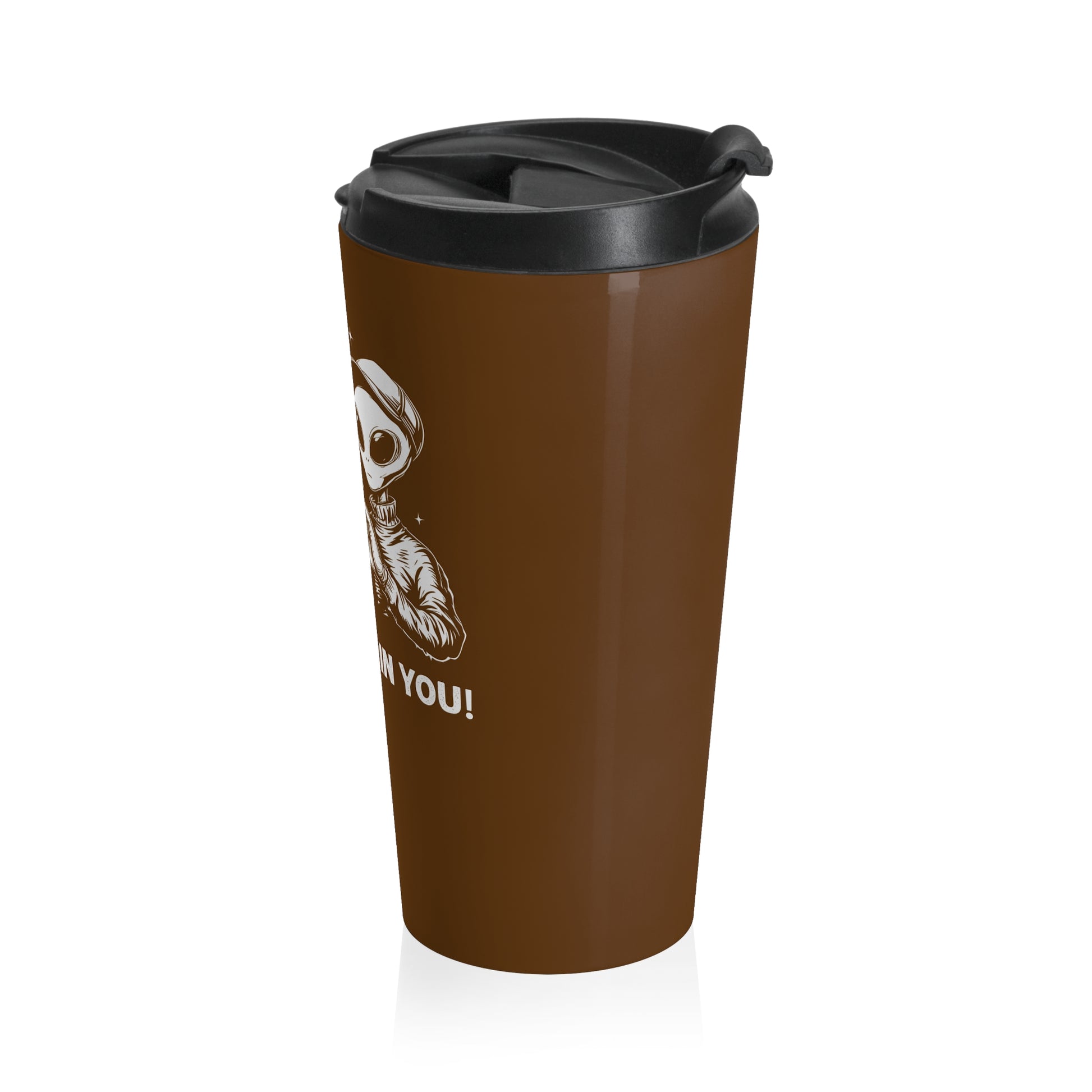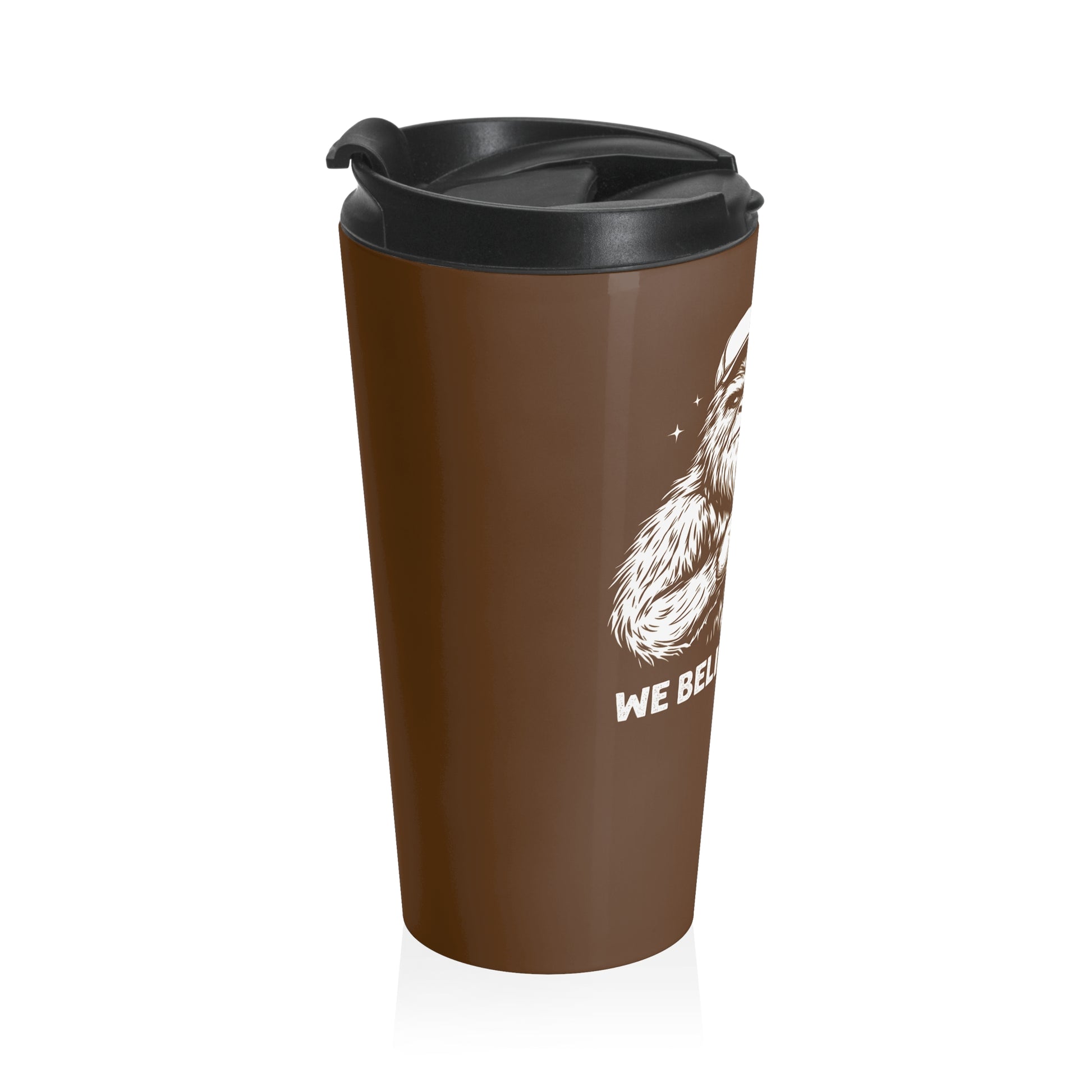 bigfoot travel mug, alien coffee mug, cryptid drinkware, conspiracy humor mug, motivational funny mug, stainless steel travel mug, weird gift idea, believer mug, WackyGiftShop travel mug