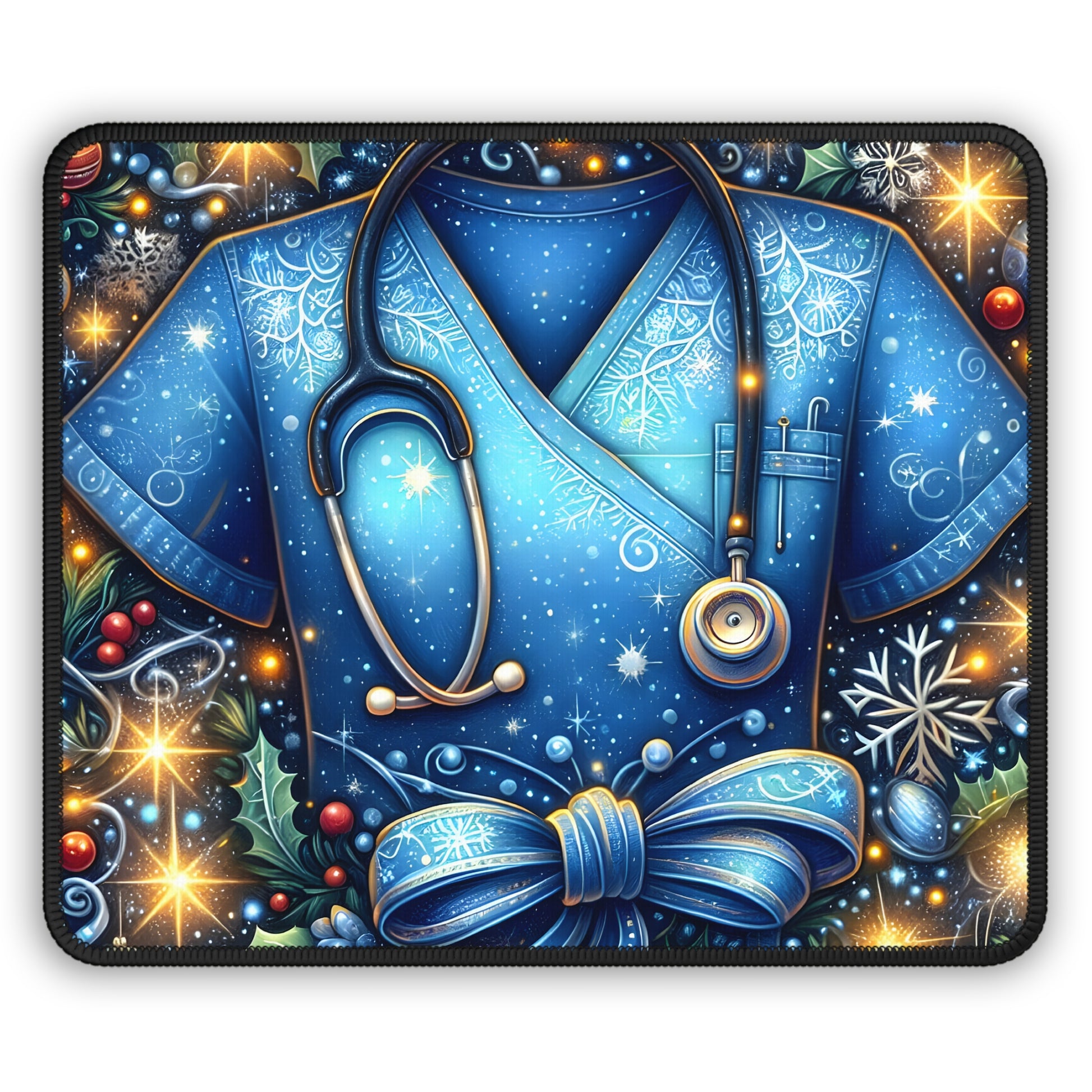 Bring calm, comfort, and appreciation to your workspace with the Winter Caregiver Scrubs Mouse Pad. Featuring soft blue medical scrubs adorned with delicate snowflakes, glowing winter accents, and a stethoscope centerpiece, this design blends professional pride with seasonal warmth. It’s a quiet reminder of compassion, dedication, and the care that never takes a day off.