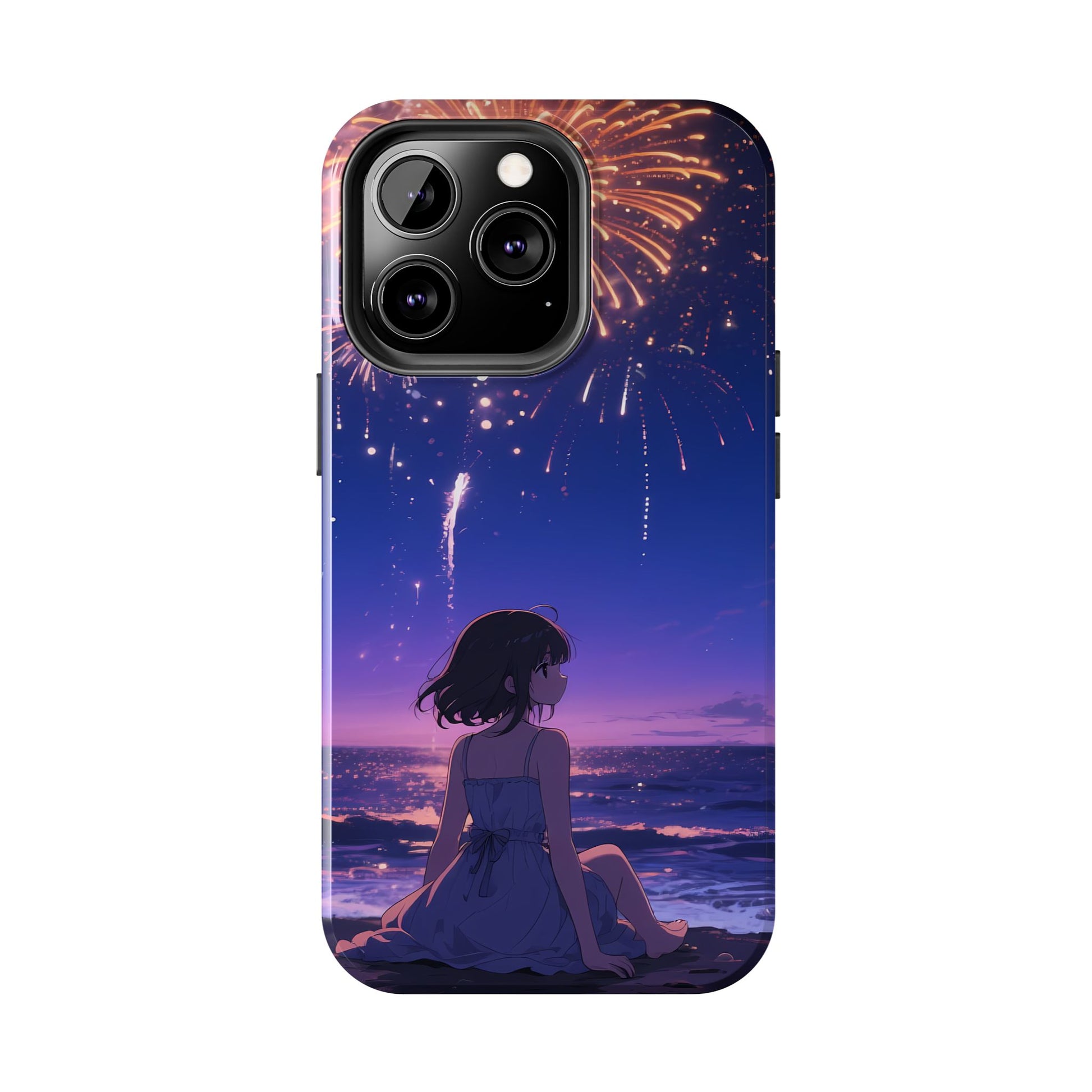 Fireworks Night Phone Case — Anime Girl Beach Sunset Tough Case